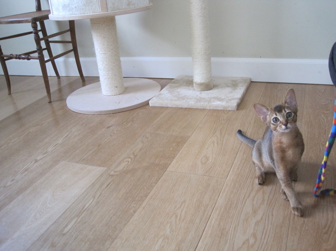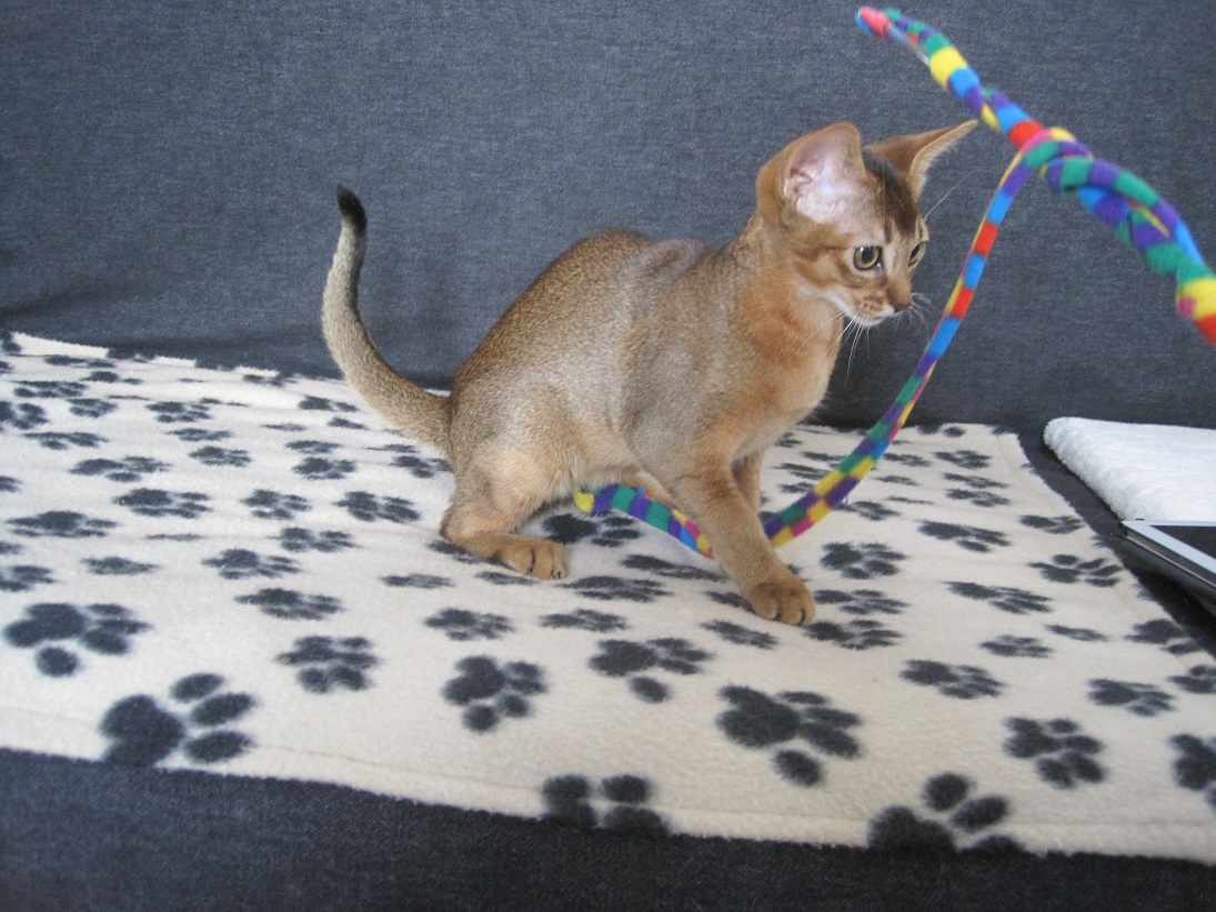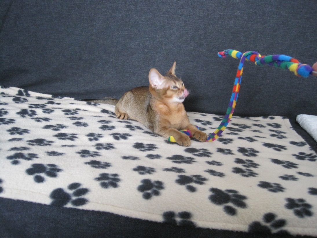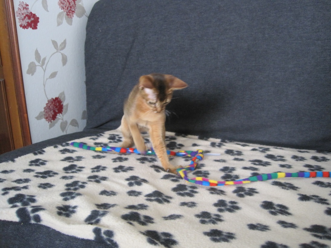 WARNING! Strings will never be left unattended, since the cat could tangle and suffocate herself.
